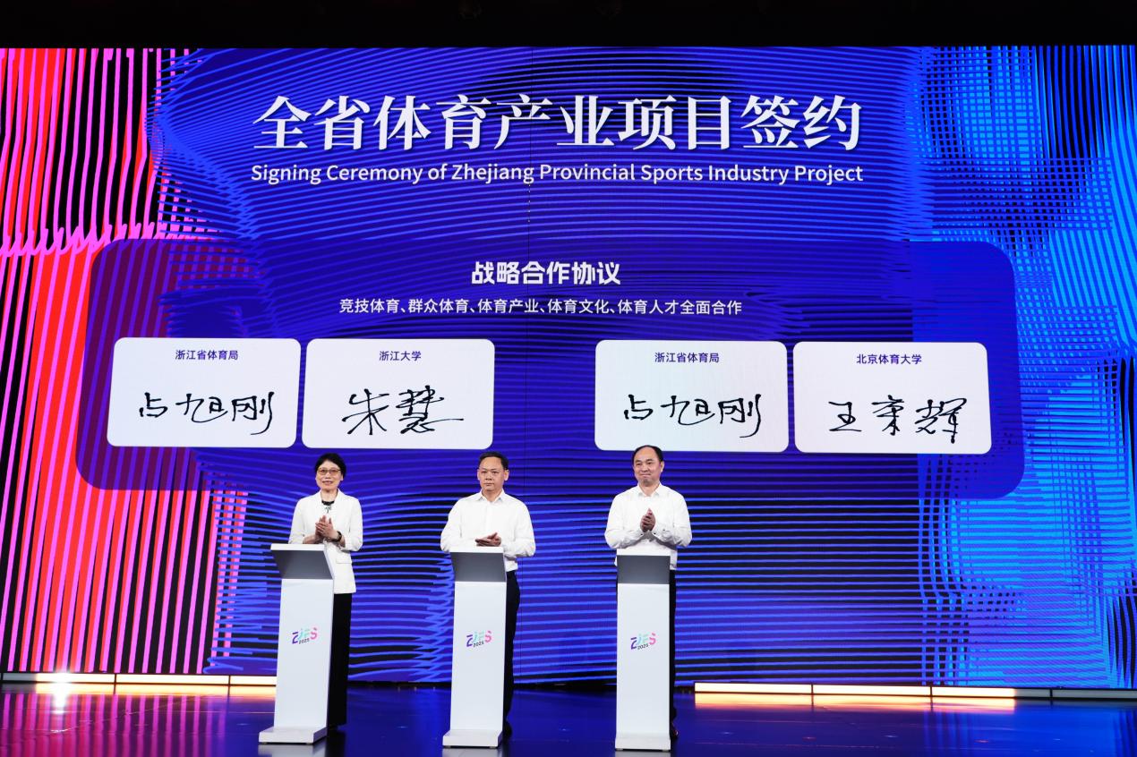 4月30日,首届浙江(杭州)国际时尚体育周开幕式在浙江省黄龙体育中心举行。北京体育大学党委副书记、校长张剑,党委常委、副校长王荣辉出席开幕式,并与浙江省体育局正式签署《浙江省体育局 北京体育大学战略合作协议》。协议的签署标志着北京体育大学和浙江省体育局校地合作迈入全方位、深层次发展的新阶段。